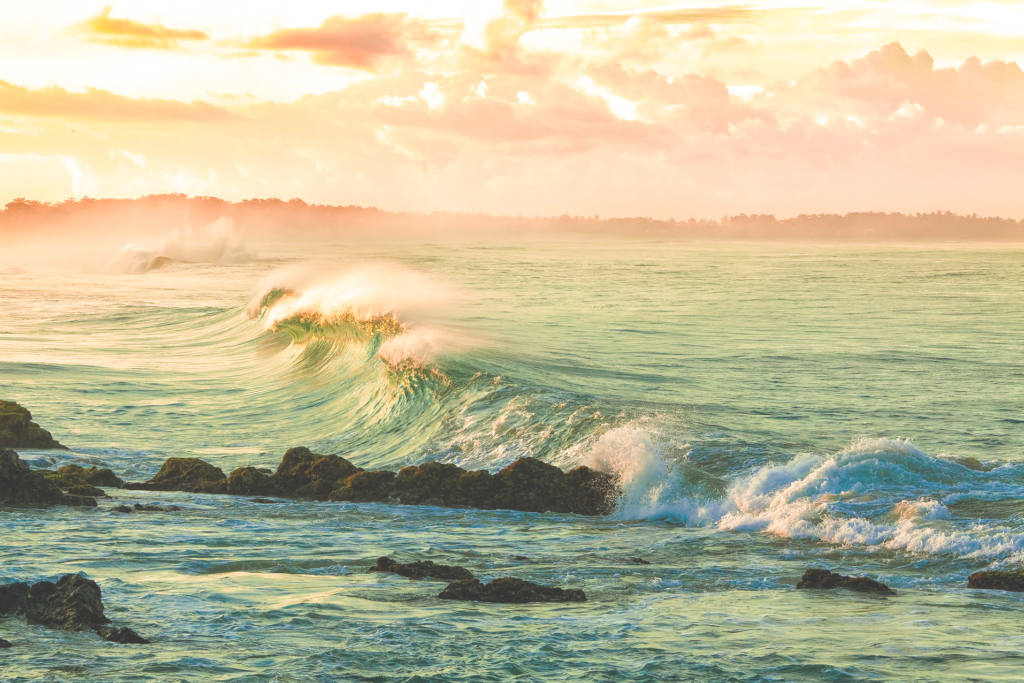では次に、例えの部分を見てみましょう。”when a wave realizes it is the ocean” というのは、直訳すると「それは海だ、と波が気付く時」となります。動詞の realize という単語は、ただ単に気付くだけでなく「頭で思考し理解する」というプロセスを通して気付くという意味があり、悟るとも訳せる単語です。文中の it ですが、単数なので直前の a wave を指していると考えます。つまり「波は海なんだ、と波自身が気付く時」となります。ここまでくると、なんとなく意味がわかるでしょうか?波と海が何を指しているか、には色々な解釈がありますが、今回は1番シンプルなものをご紹介します。
